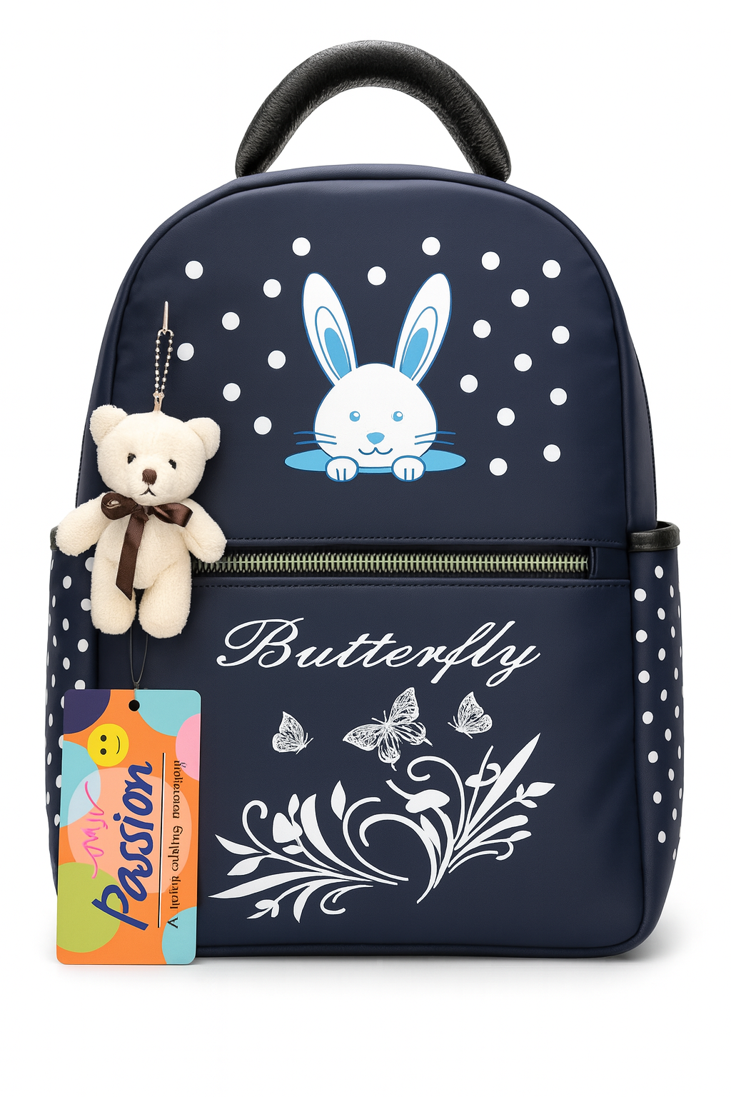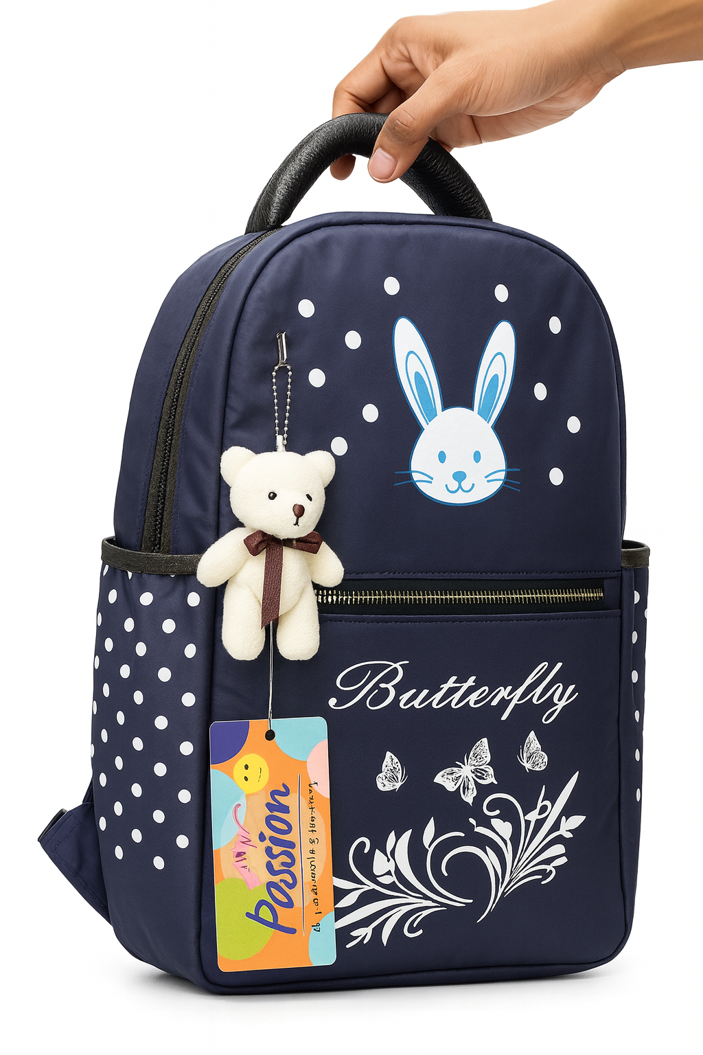 Introduce style, comfort, and convenience to your child’s everyday routine with this adorable Navy Blue Kids Backpack. Designed with a cute bunny print, dotted pattern, and an attached soft teddy keychain, this bag brings fun and functionality together—perfect for school, tuition, travel, and daily use.