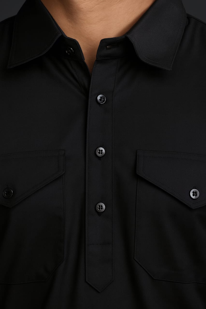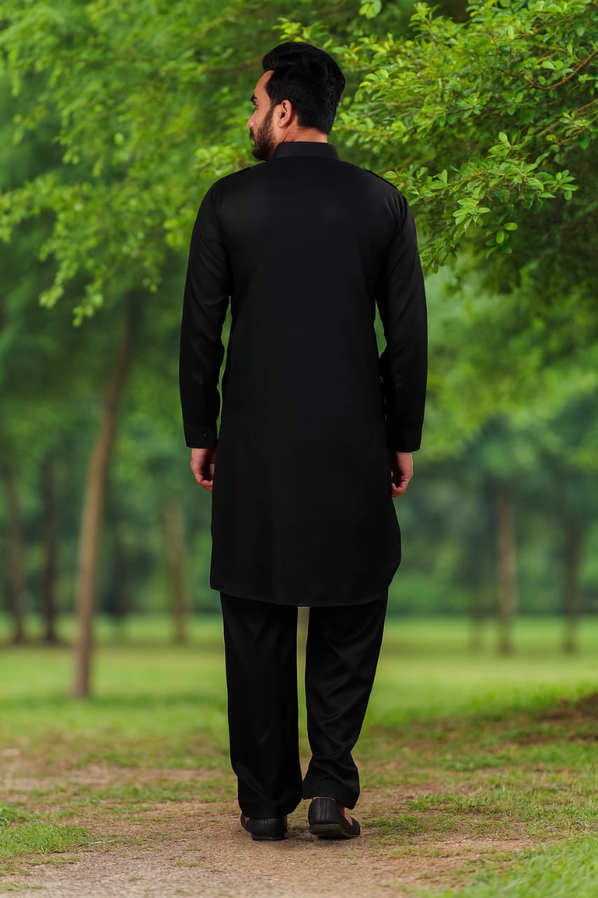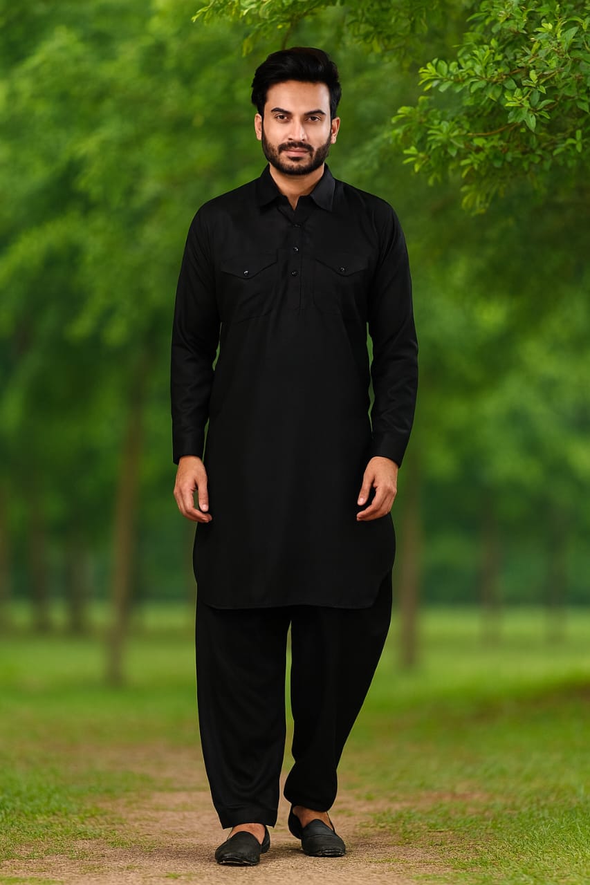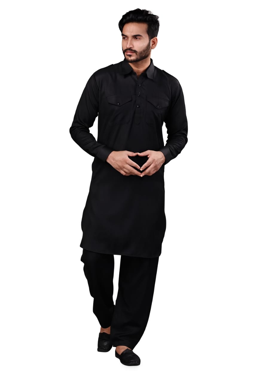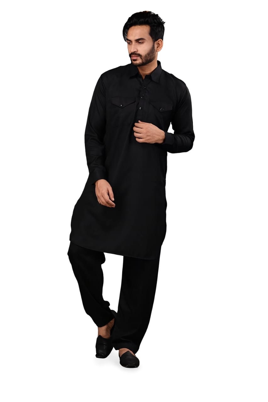 Men’s Black Cotton Casual Pathani Kurta and Pyjama Set