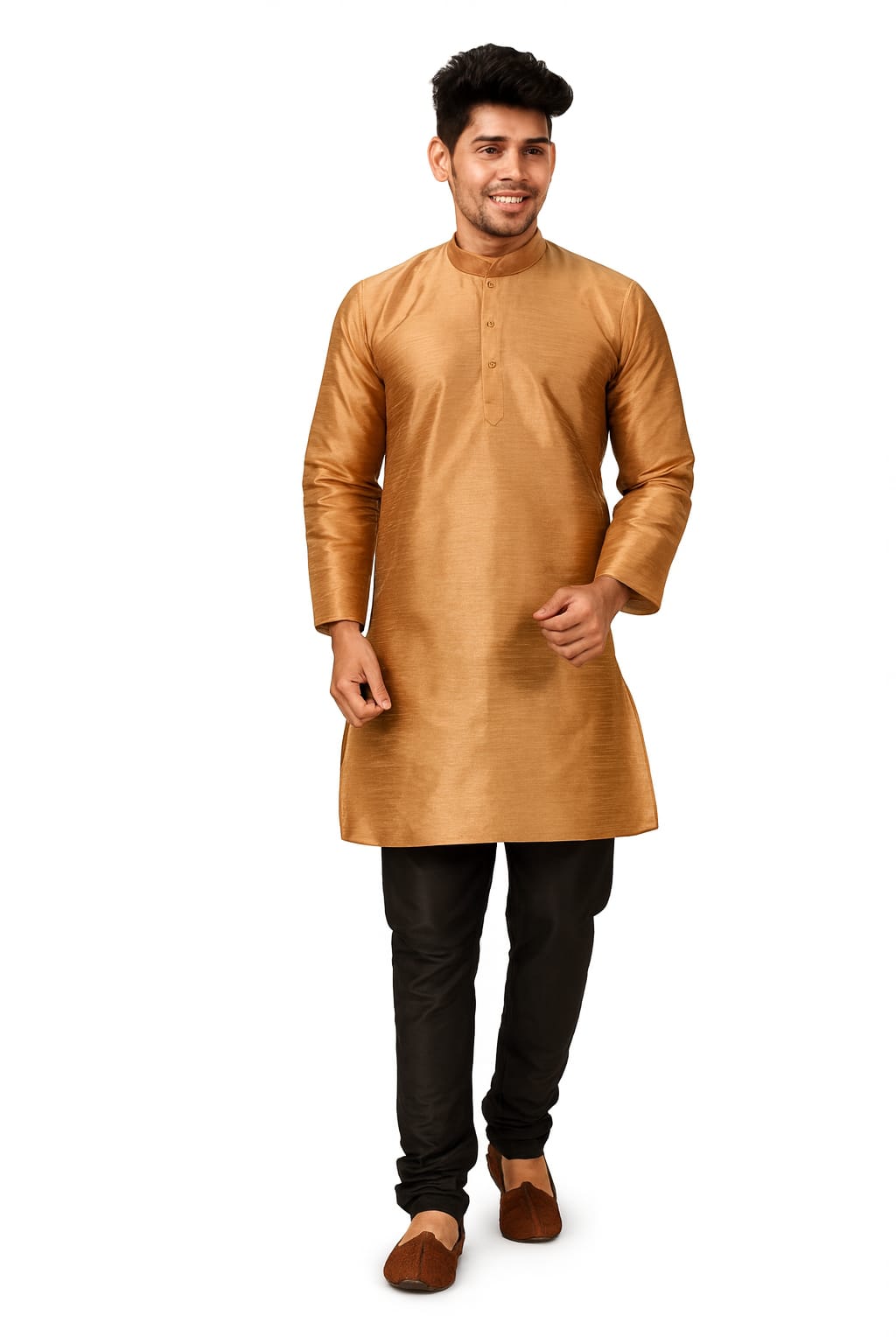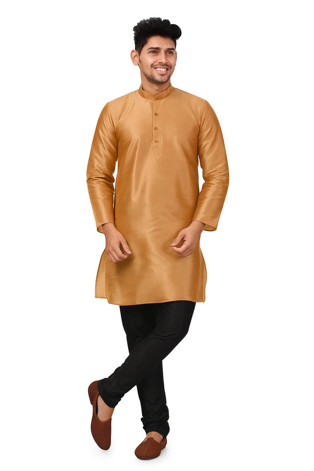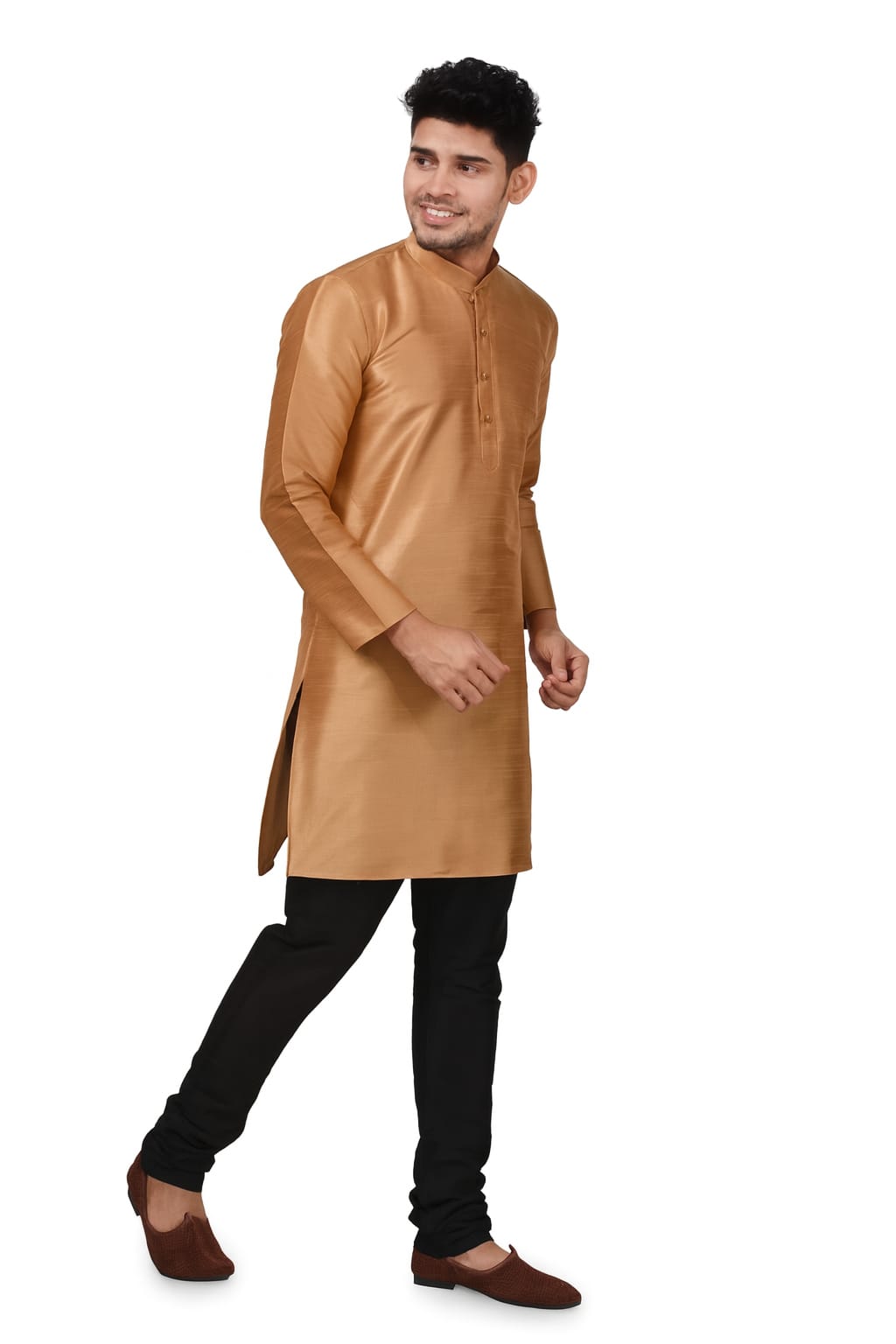Men’s Golden Brown Dupion Silk Casual Kurta